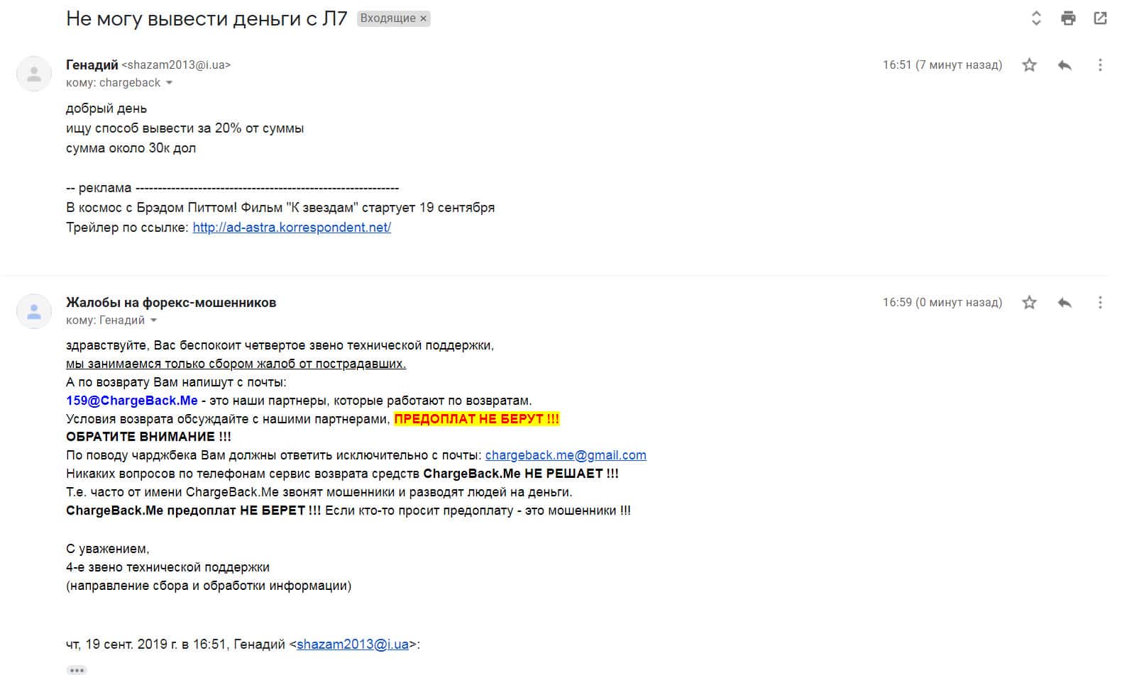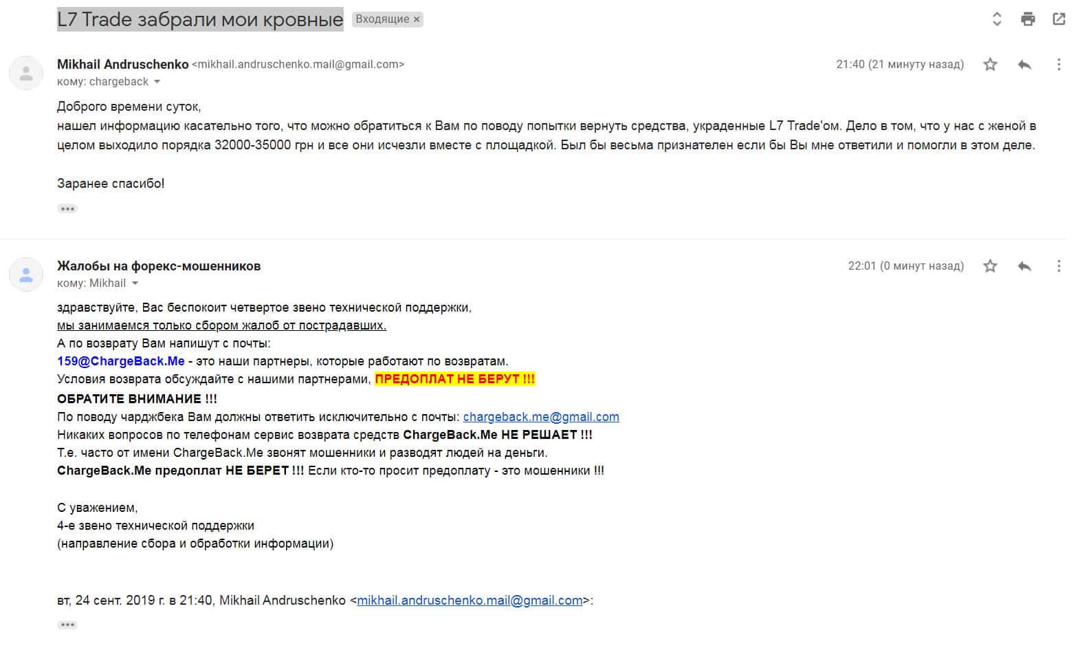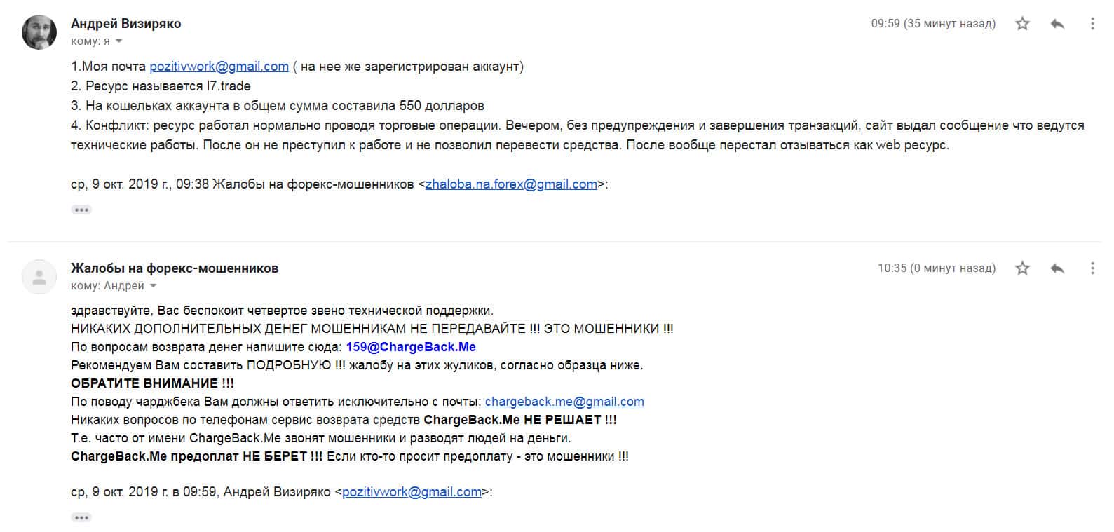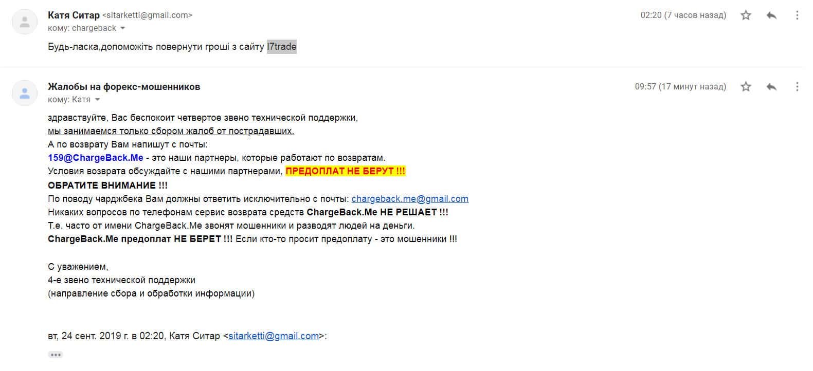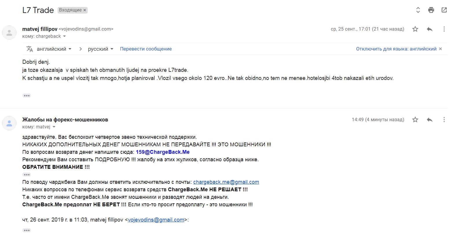 Жалоба на аферистов Л 7 Трейд от очередного пострадавшего