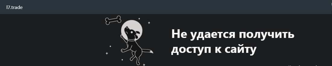 Интернет-ресурс шайки аферистов l7 trade ушел в небытие, а все денежные средства, которые были переведены в данный scam-проект огромным количеством лохов из стран бывшего совка, остались у создателей-жуликов.