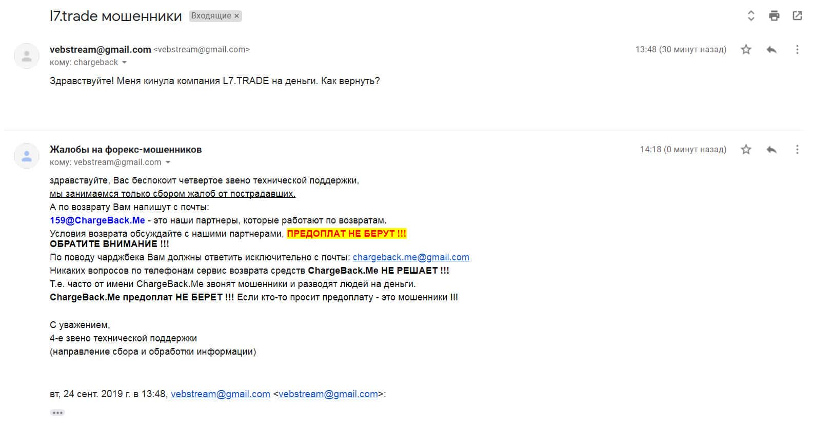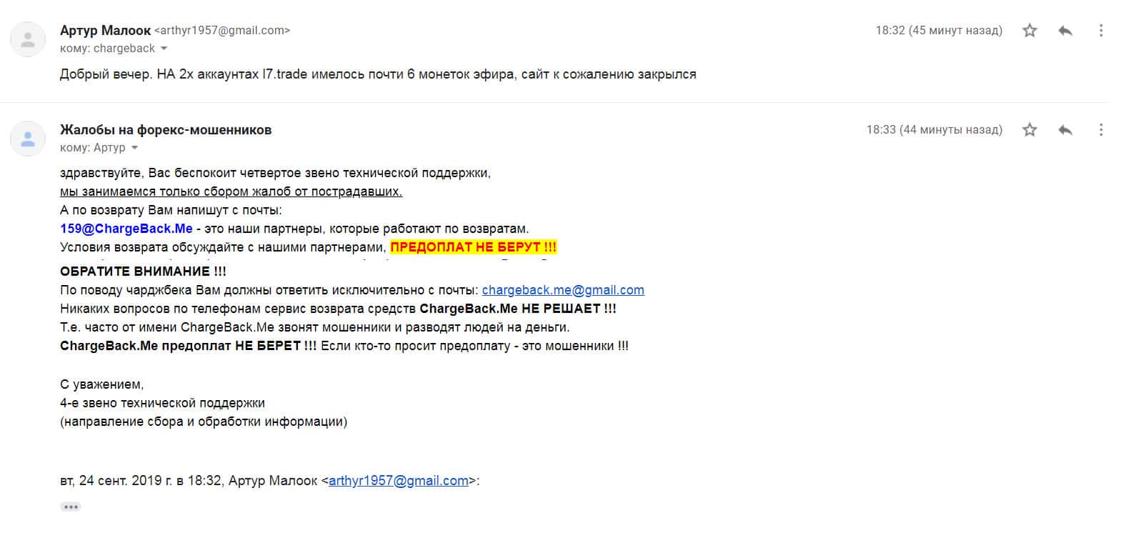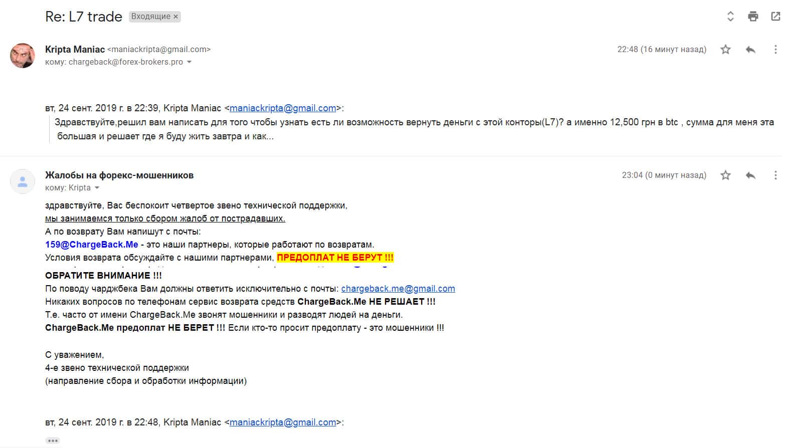 - Мошенники Л7 Трейд не отвечают своим клиентам