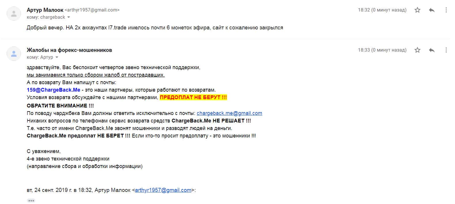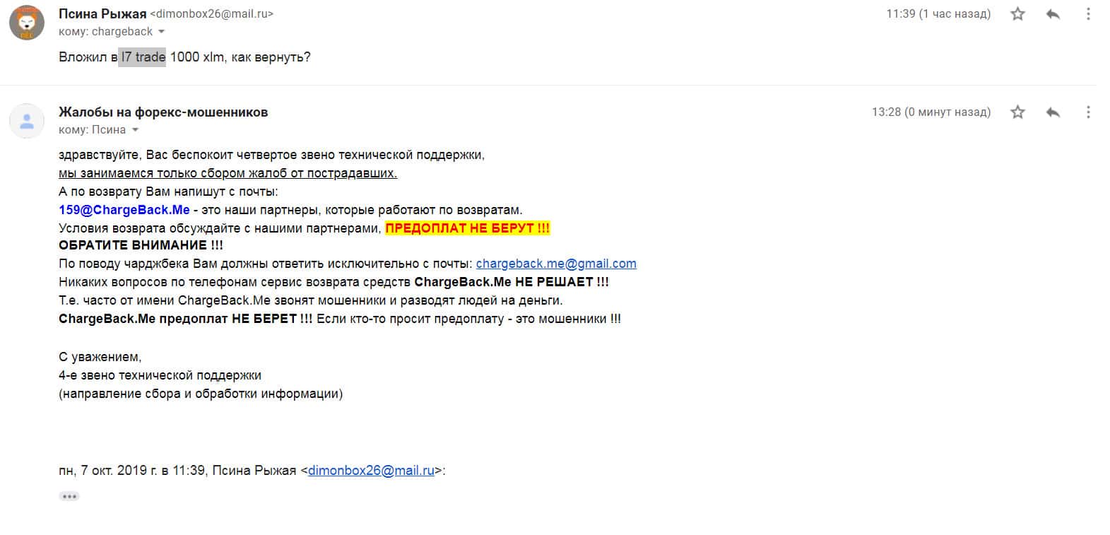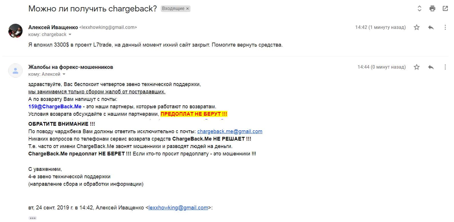 - Мошенники Л7 Трейд не отвечают своим клиентам
