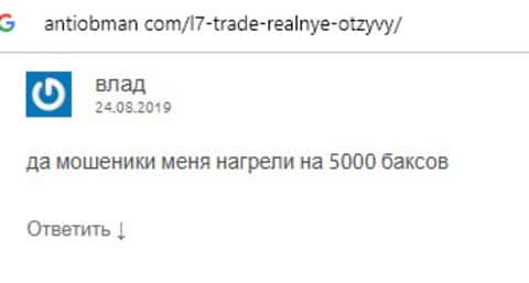Еще один человек присоединился к мнению, что хайп Л7 Трейд - обман