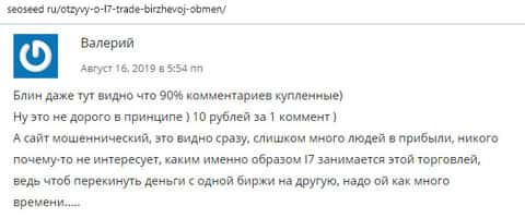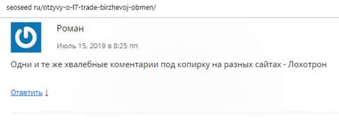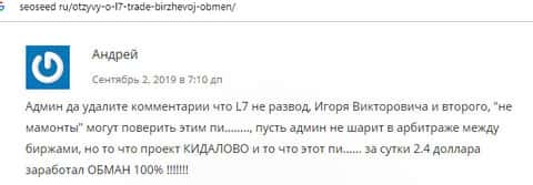 Отзыв о липовых хвалебных комментариях о шулерах Л7 Трейд