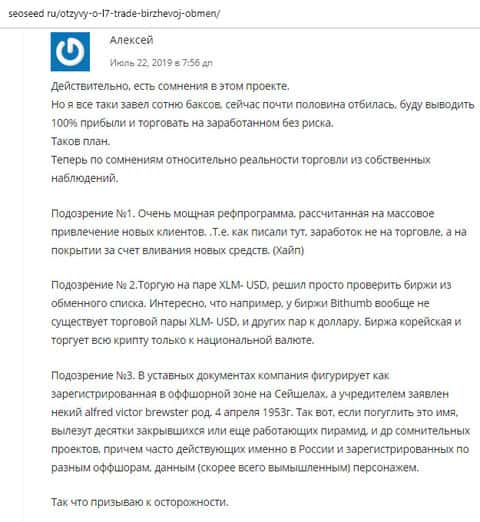 - Еще один человек присоединился к мнению, что хайп Л7 Трейд - обман