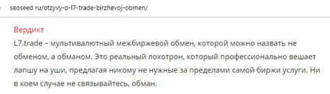 - Очередной интернет-ресурс высказался не в пользу шараги L7 Trade