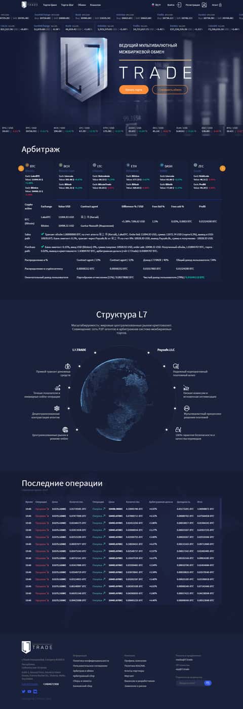 L7 Trade - мошеннический сайт, который предлагает зарабатывать якобы на арбитраже криптовалютами между различными биржами. Идея конечно хорошая, но если бы такое было, то никто бы такого бота не продавал, так как это золотая жила. Тем не менее люди продолжают верить в сказки и отправляют деньги аферистам на оффшорные счета.