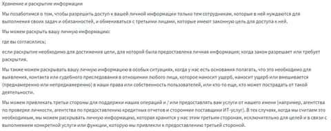 В политике конфиденциальности лохотрона Л7 Трейд все очень печально, так как согласно написанному, есть повод переживать, что ваши данные под угрозой распространения среди заинтересованных лиц в наживе. Они все разглашения списывают на особые ситуации, но если потребуется, то аферисты создадут нужные обстоятельства сами.