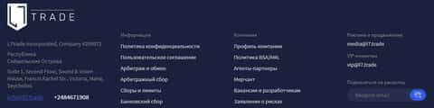 Для связи с мошенниками Л7 Трейд, контора предоставила некоторые данные, а именно адрес главного офиса в оффшоре, электронные почты и номер телефона. Казалось бы достаточно информации, чтобы доверить им свои деньги. Но не спешите делать выводы, так как после получения средств, подобные шараги уходят из виду. А теперь по-порядку о контактах: