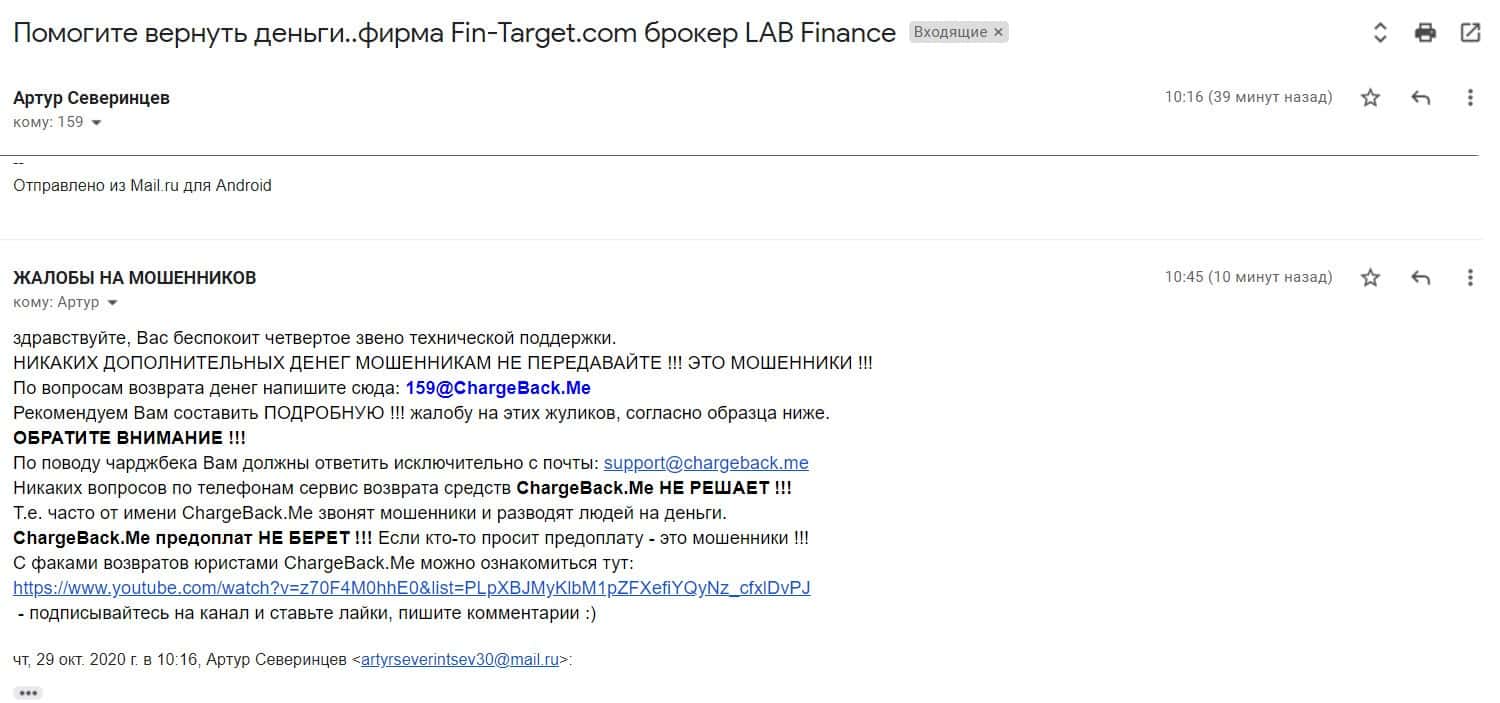 Далее на публикации предлагаем ознакомится с жалобой обманутого клиента мошеннических организаций Лаб Финанс и Фин Таргет, человек пытается вернуть утраченные деньги.