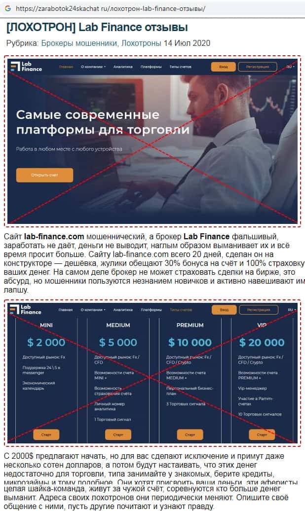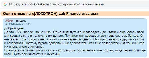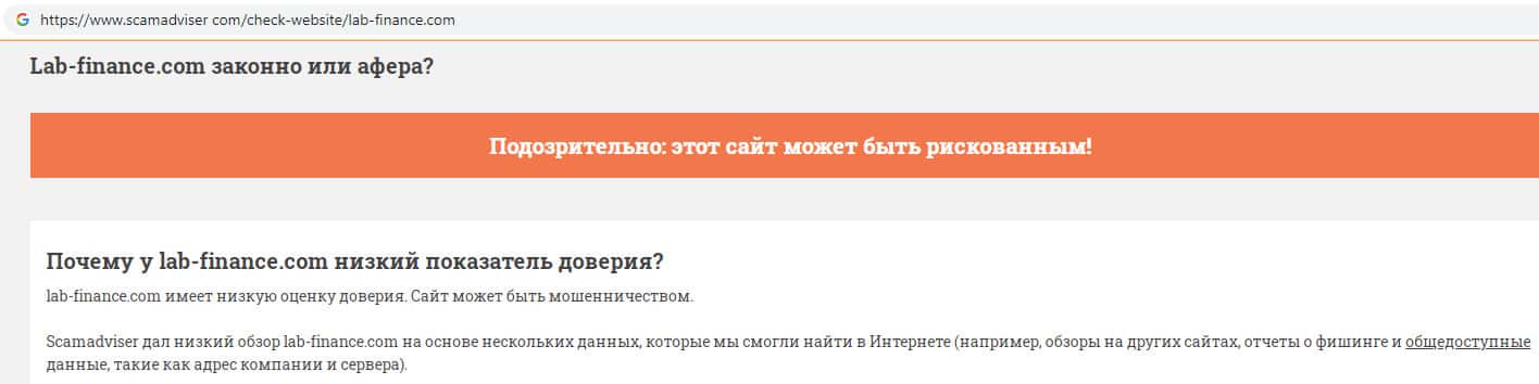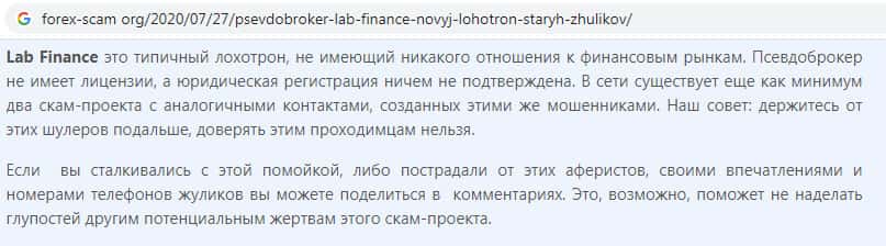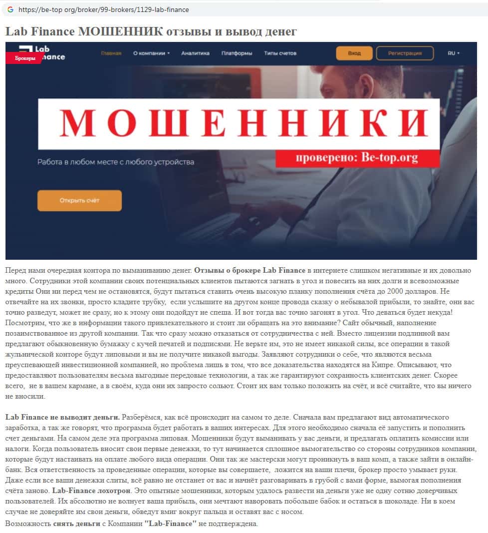 Отзывы о скам-организации Лаб Финанс, ныне присутствующие в сети-интернет