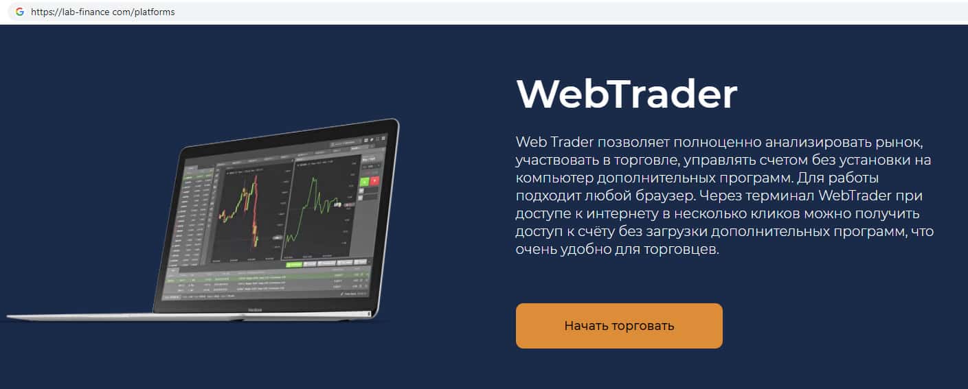 Жулики Лаб Финанс на своем дырявом сайте предлагают торговать при помощи сомнительного происхождения платформы Web Trader, чего делать не рекомендуем !!!