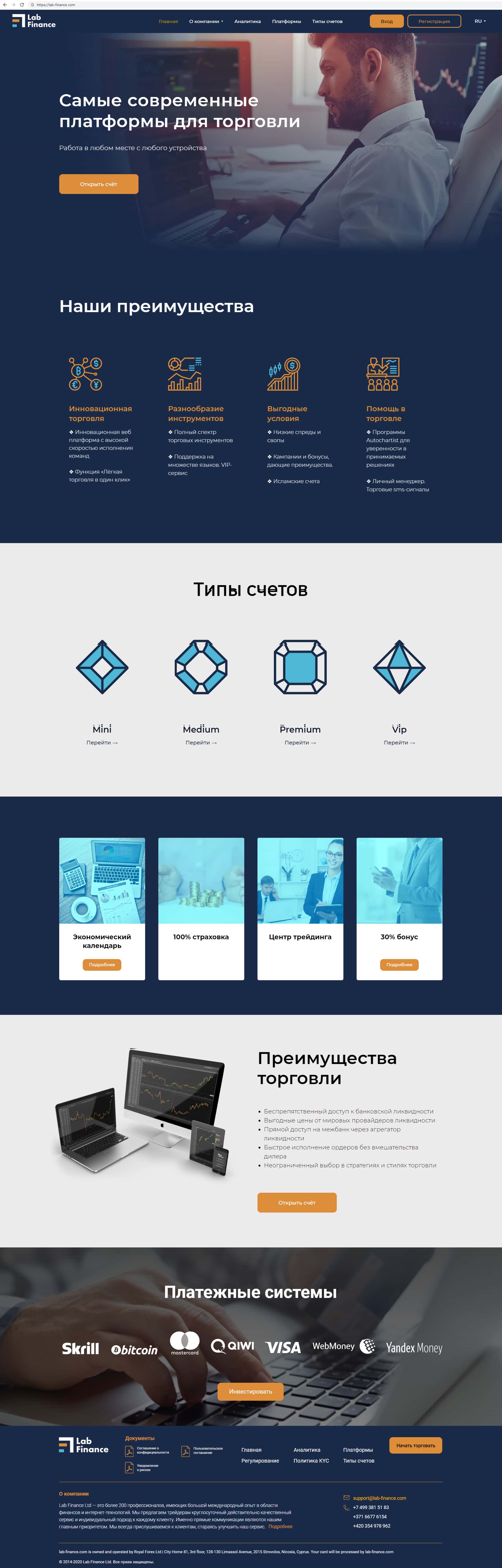 В данном разделе предлагаем увидеть скрин главной веб-страницы онлайн-ресурса скам-конторы Лаб Финанс, помните о том, что такие проекты очень быстро скамятся.