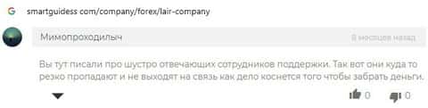 Как только дело касается вывода денежных средств со счета, служба технической поддержки шараги Лаир Компани перестает отвечать пользователю.