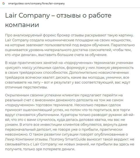 Отзывы о скам-компании Лаир Компани, ныне присутствующие в сети