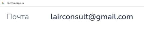 Мошенники Лаир Компани на своем официальном интернет-сервисе указывают адрес электронной почты, а именно: