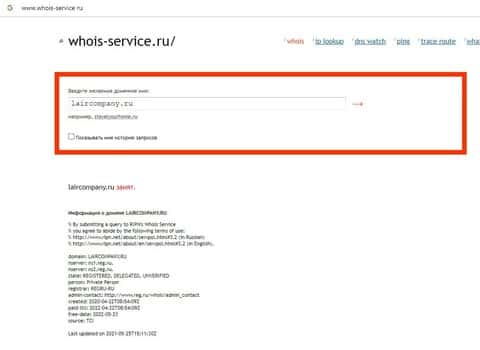 Проведя анализ данных по сайту LairCompany Ru, не было обнаружено информации о владельце домена, что является еще одним признаком того, что имеем дело со скам-проектом.
