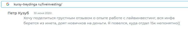 - Скам-организации Лайв Инвестинг пользователи не доверяют
