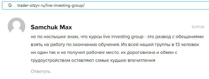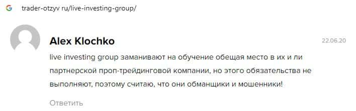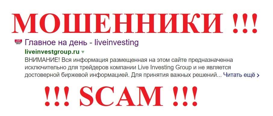 - Отзывы о скам-проекте Live Investing Group, ныне присутствующие в сети