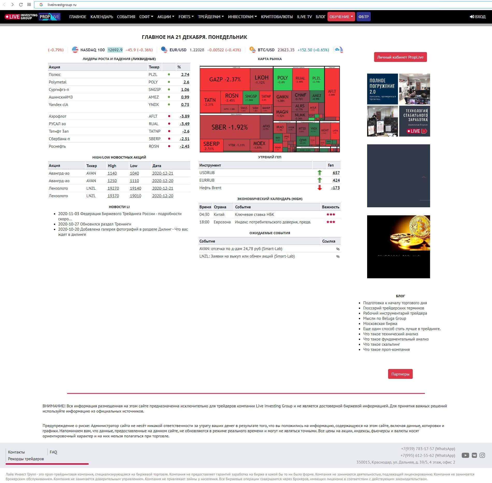- Обзор главной страницы интернет-лохорона Live Investing Group