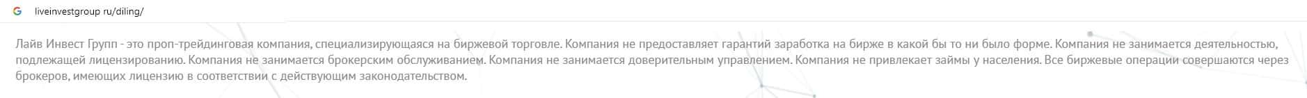 - Отсутствие клиентского соглашения скам-организации Лайв Инвестинг