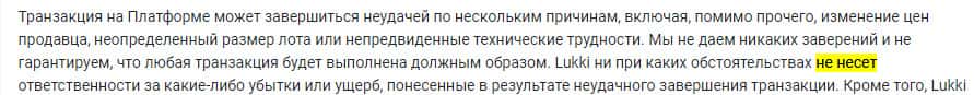 Также жулики Lukki io не несут ответственности за убытки, которые случились из-за контента третьих лиц. То есть, они сами впихнул вам дэзу, а потом ни при делах.
