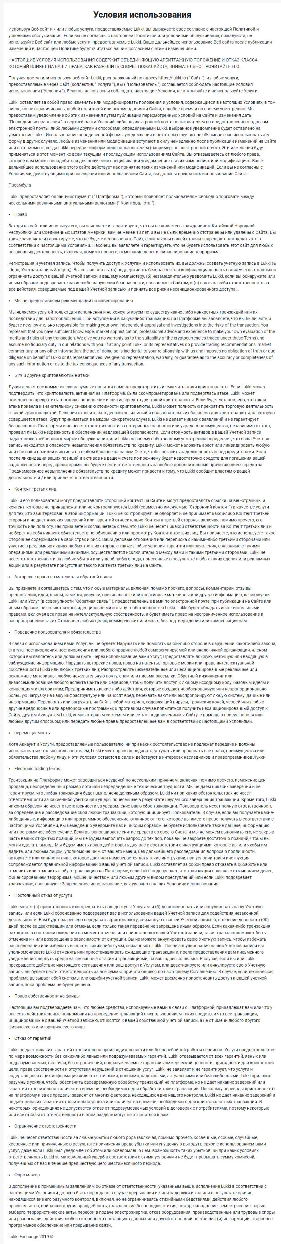 - Клиентское соглашение мошеннической конторы Lukki io