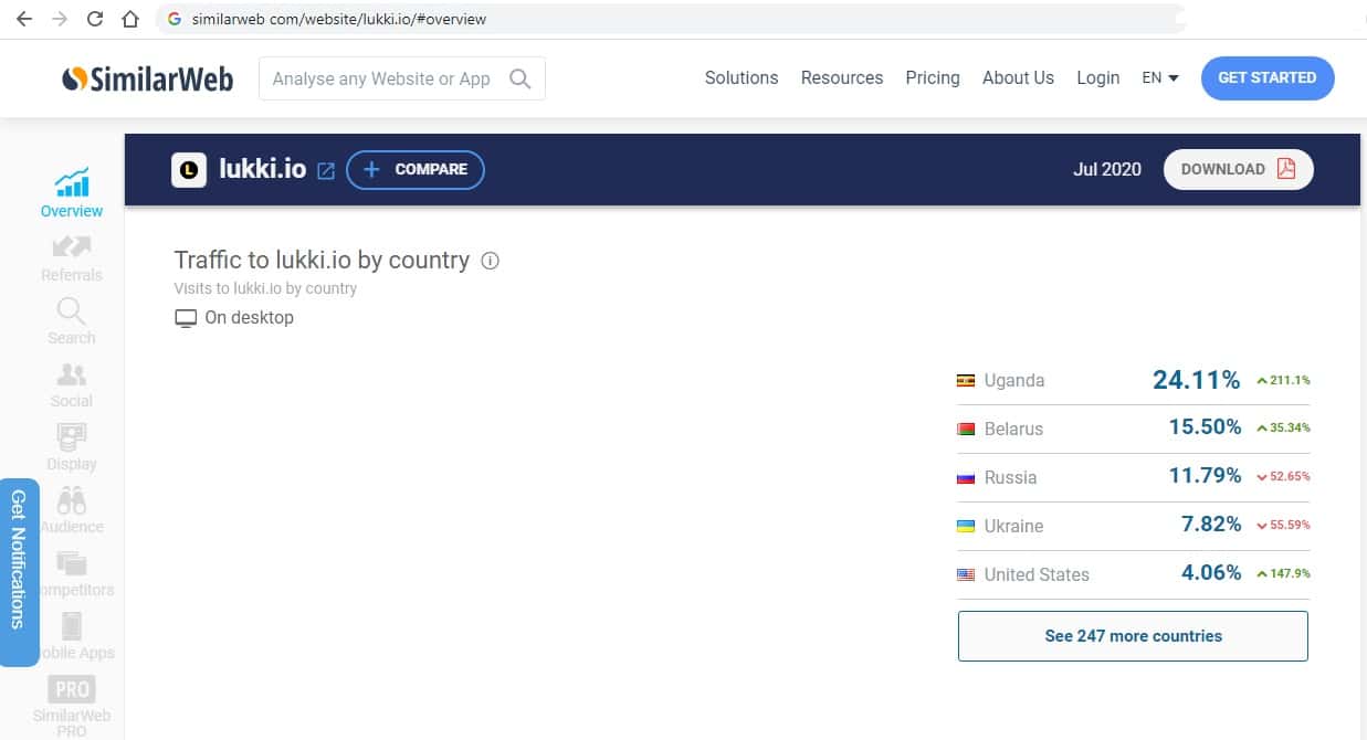 Источники трафика сайта конторы lukki io