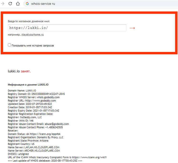 - Данные владельца домена lukki io скрыты