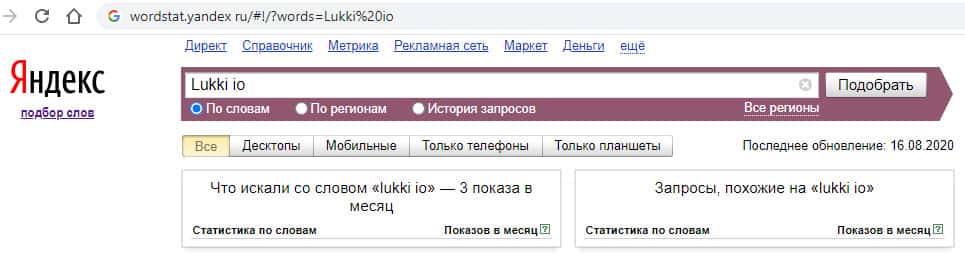 Первый запрос в Яндекс на английском языке "Lukki io" дает результат в 3 просмотра в месяц. Так ищут информацию о жуликах в яндексе.