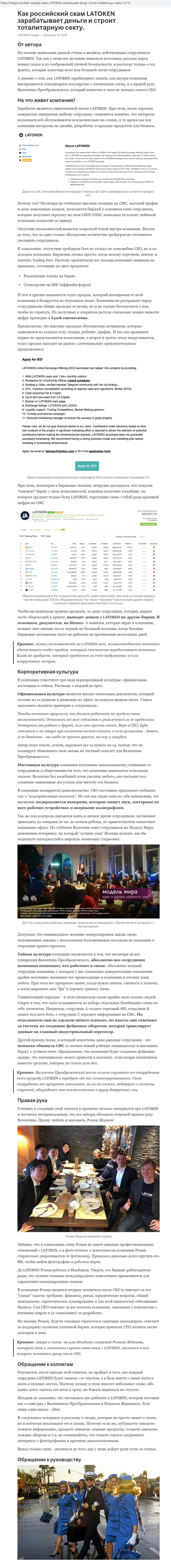 Автор вышеизложенного информационного материала о жуликах Latoken
