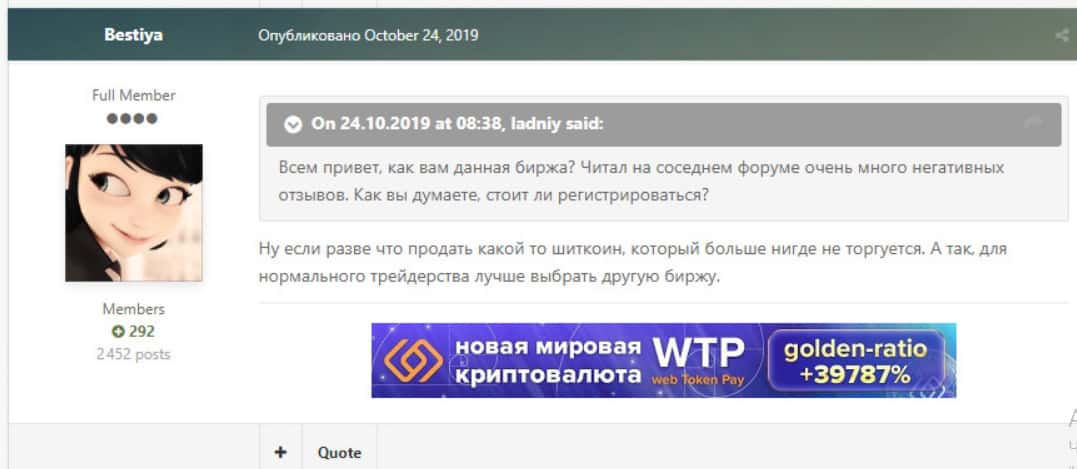 Пользователь с ником Ladniy задал вопрос на форуме cryptotalk org о том, стоит ли с работать с биржей Латокен, на что получил множество ответов, характеризующих эту площадку в негативном ключе. Один из участников форума ответил, что не нашел в Латокен ничего хорошо, так что лучше пройти мимо нее.