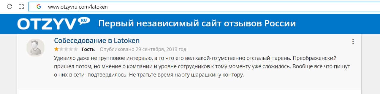 - Отзывов о жуликах Латокен в сети Интернет когда-то не было
