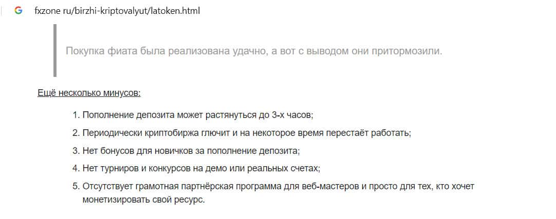- Сайт fxzone ru выделил основные минусы в работе площадки Latoken