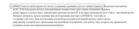 Условия использования мошенников Латокен