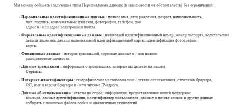 На изображении ниже находится отрывок из политики конфиденциальности жуликов Latoken, в котором наведен список того, что мошенники Латокен имеют право у вас запросить. Туда входит ваша личная персональная и не персональная информация.