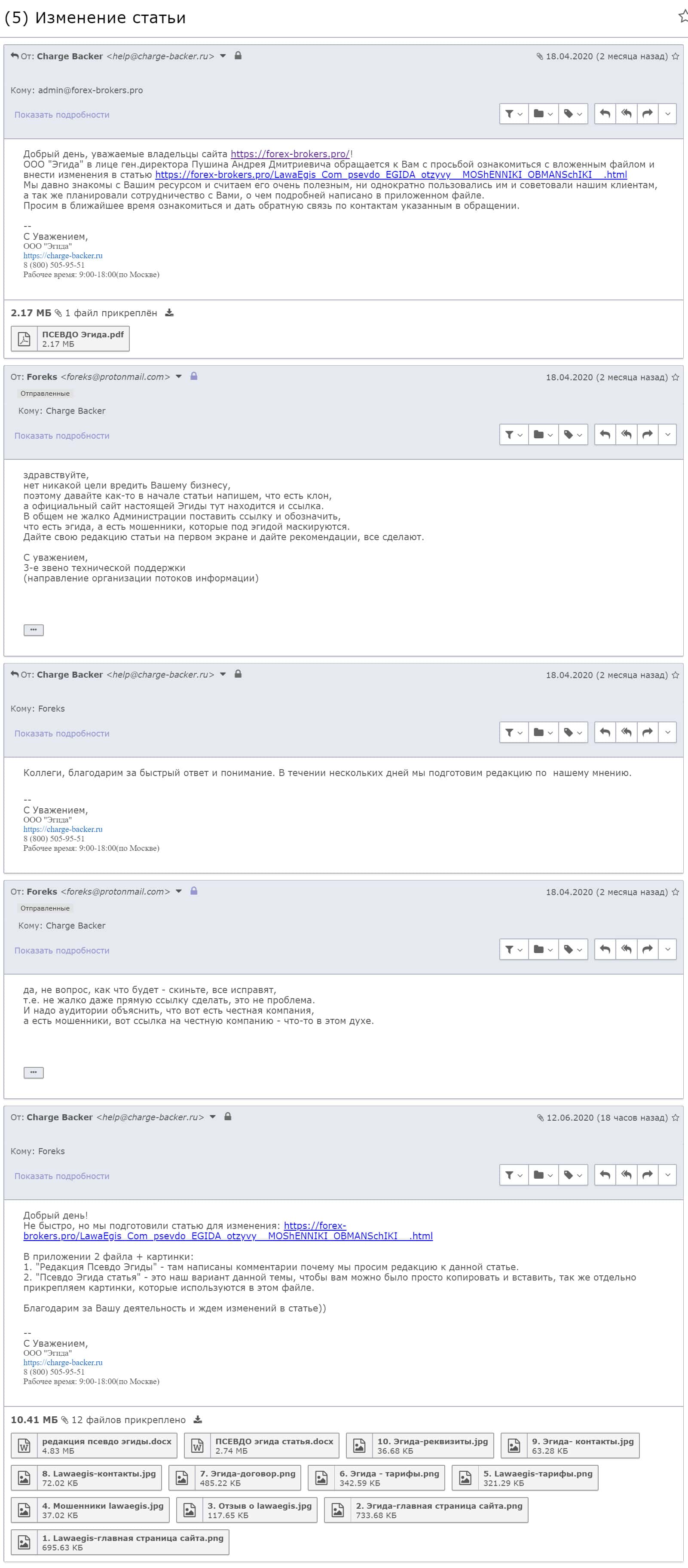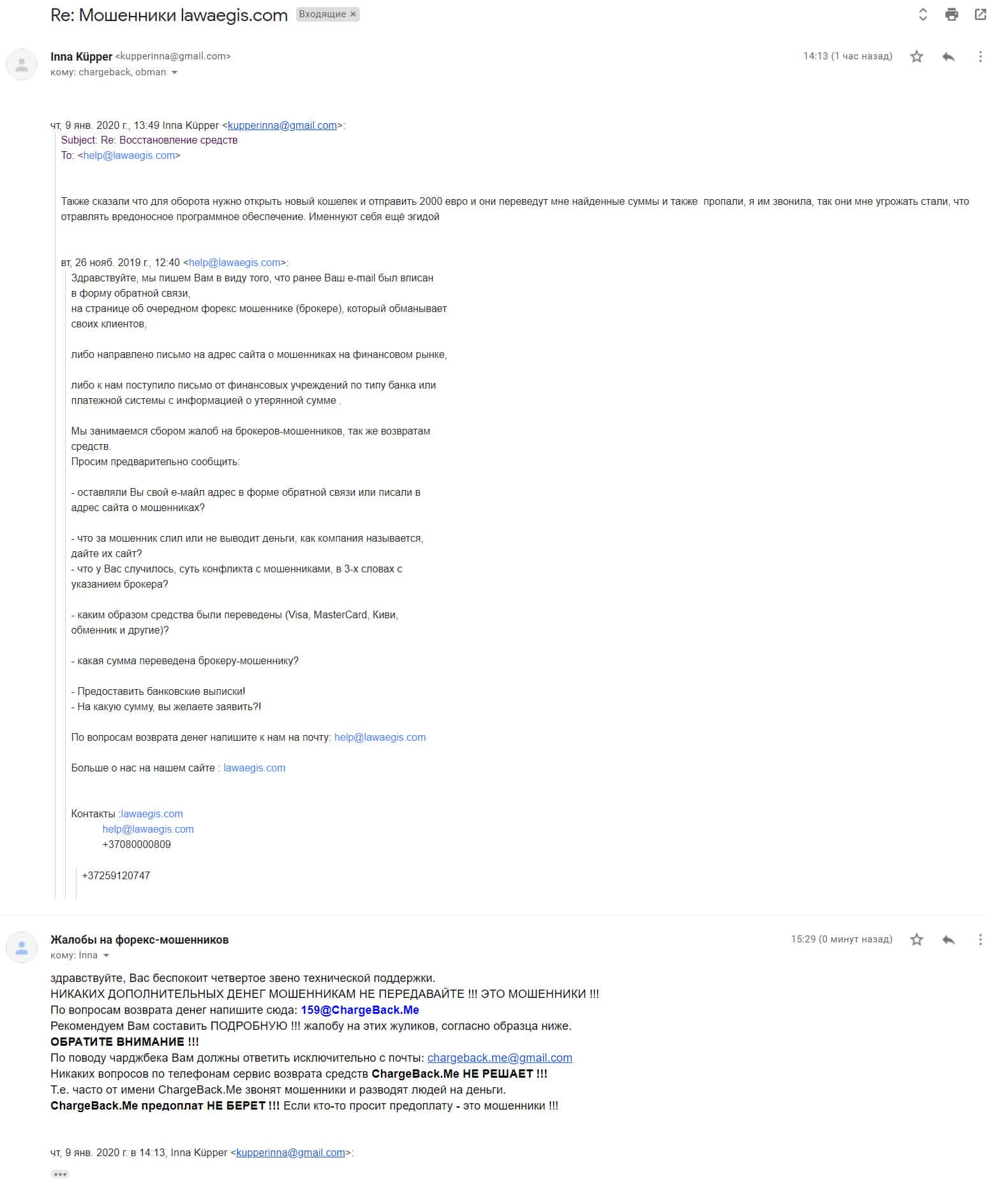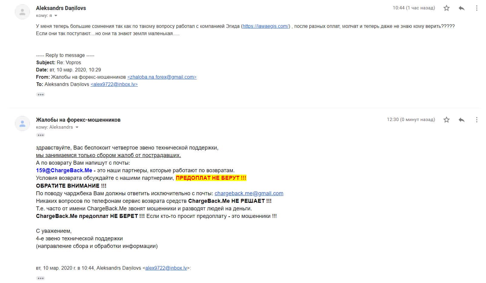 Заметим, что мы говорим именно про мошенников LawaEgis Com, которые являются клоном настоящего сайта Эгиды - https://charge-backer.ru/ с которыми имеется переписка по поводу данной статьи.