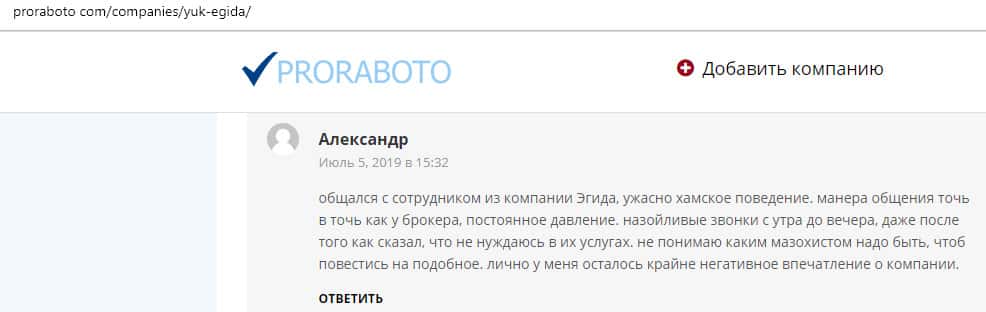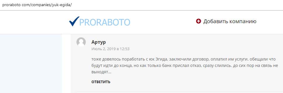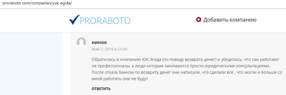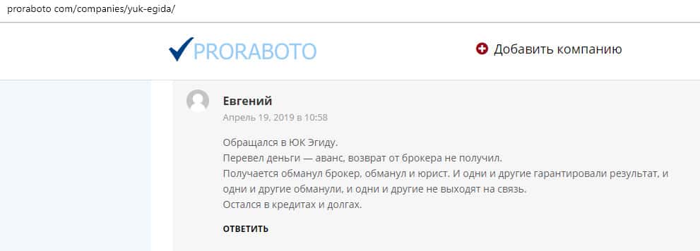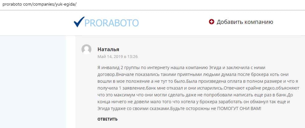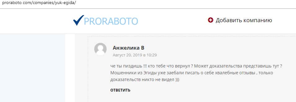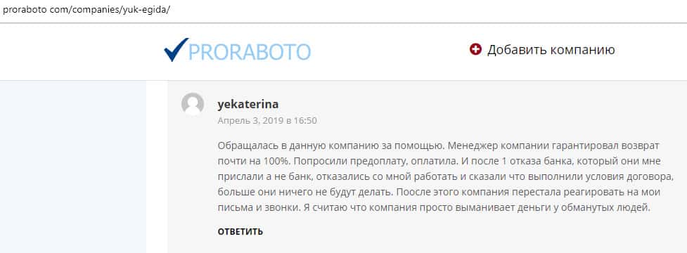 - Жалоба на контору Эгида от очередного обманутого пользователя сети Интернет