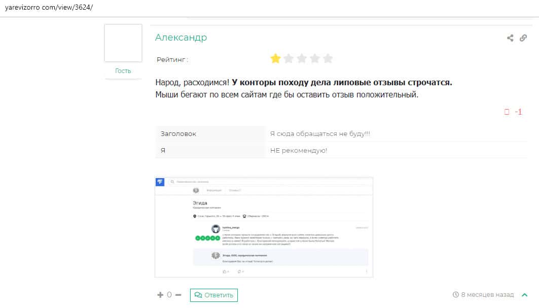 - Короткий отзыв о юристе шараш-конторы псевдо ЭГИДА