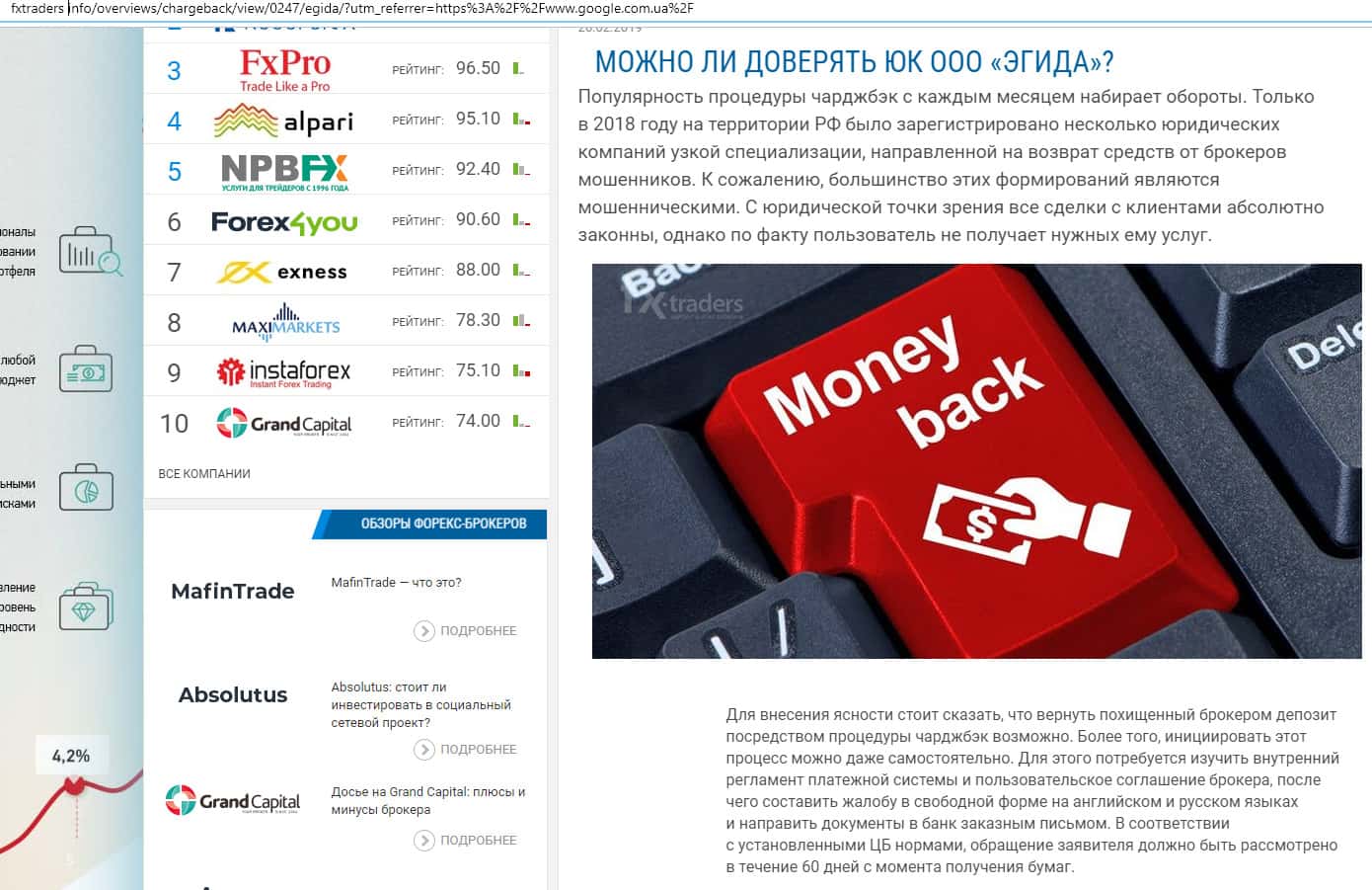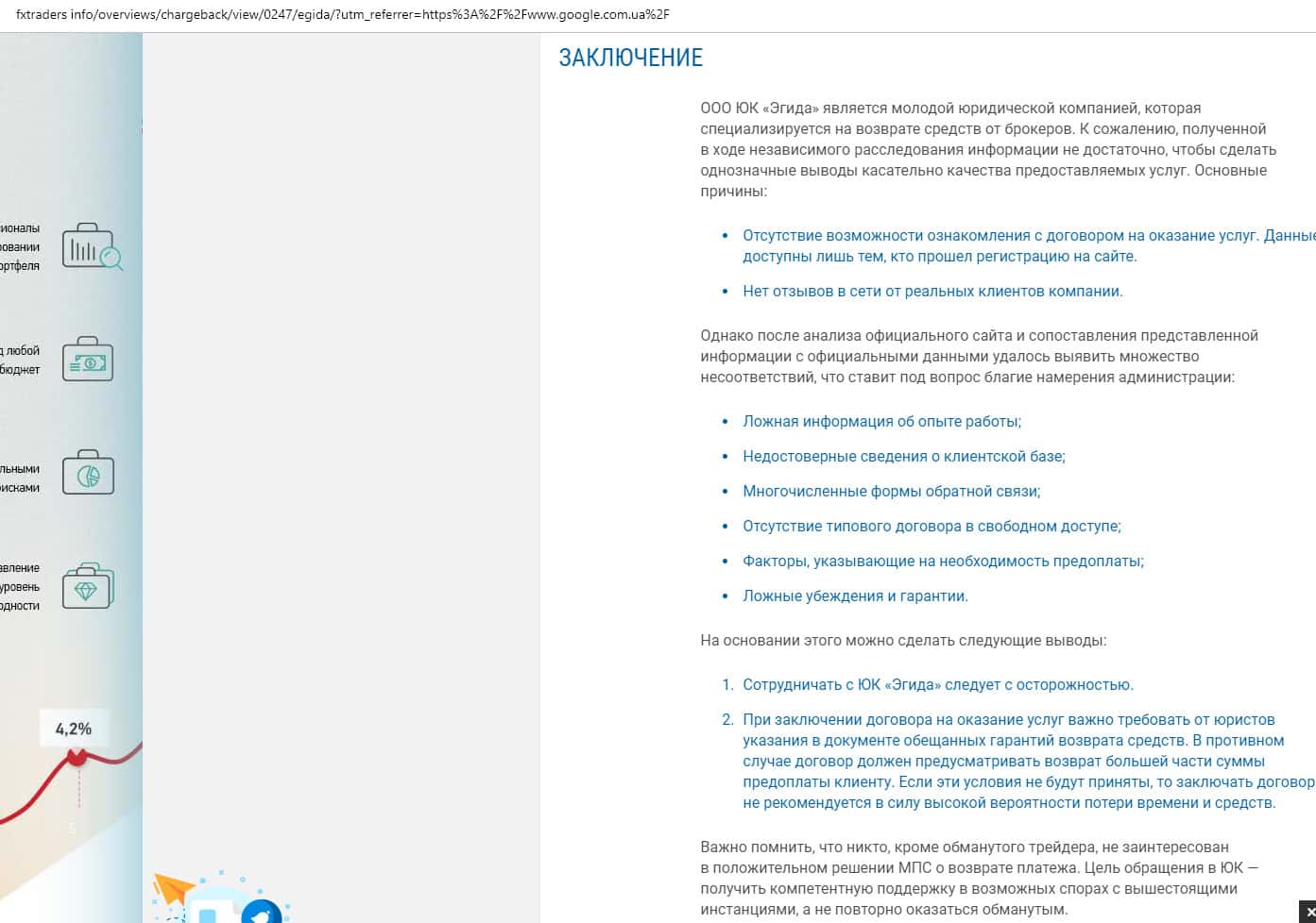 Весь сайт мошеннической конторы псевдо ЭГИДА, является некой запрограммированной заманухой, так как давят на страждущих клиентов, внушая, что они все порешают и вернут украденные брокером деньги. Человек ведется на такой расклад и попадается в очередную аферу с повторной потерей средств.