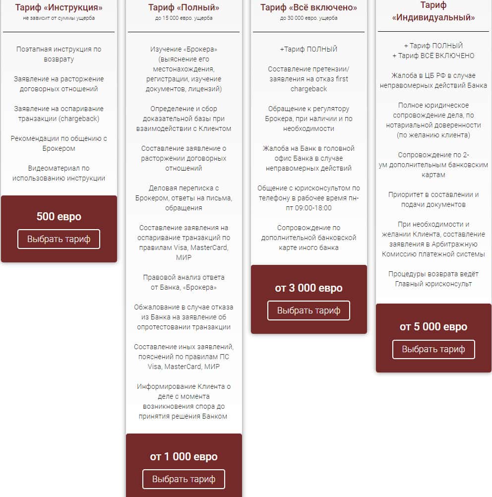 Не обязательно даже вести глубокое расследование деятельности конторы LawaEgis Com, так как все уже видно из тарифов на услуги, которые они предлагают. Там указано, что чем больше вы заплатите этим жуликам, тем больше привилегий, но это не дает никакой гарантии, что деньги вернут в целостности и сохранности.