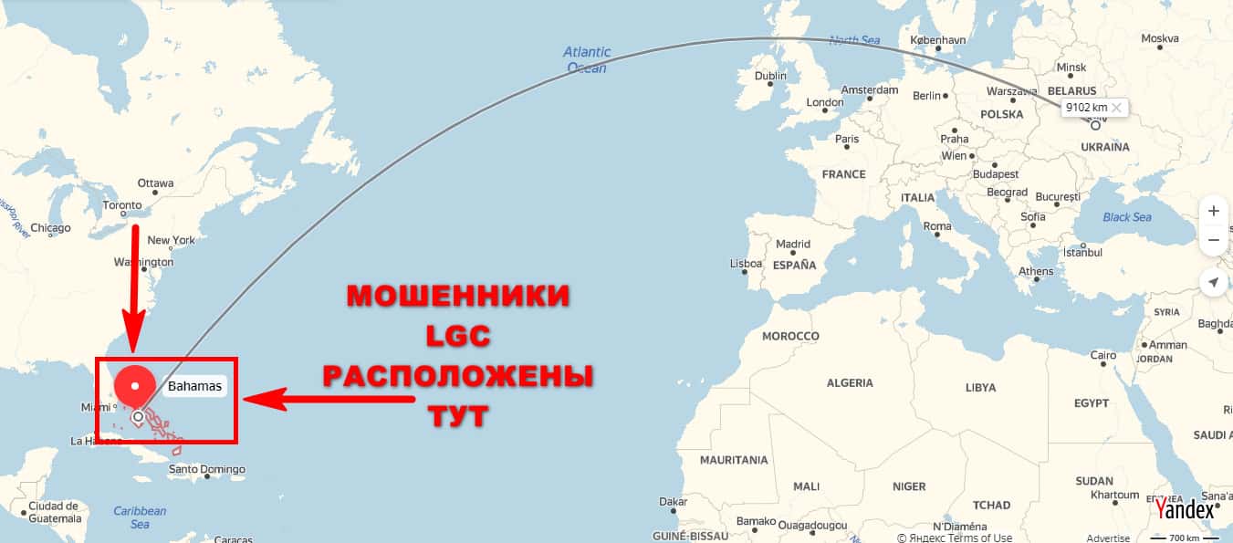 Как нам уже стало известно, лохотрон LGC является оффшорной организацией и зарегистрирован на Багамах. Поэтому шарашкина контора и не боится ответственности, а также гнева кинутых клиентов. Вот собственно и их адрес: 5 North Buckner Square, Olde Towne Sandyport, Sandyport Marina Village, West Bay Street, Nassau, Bahamas.