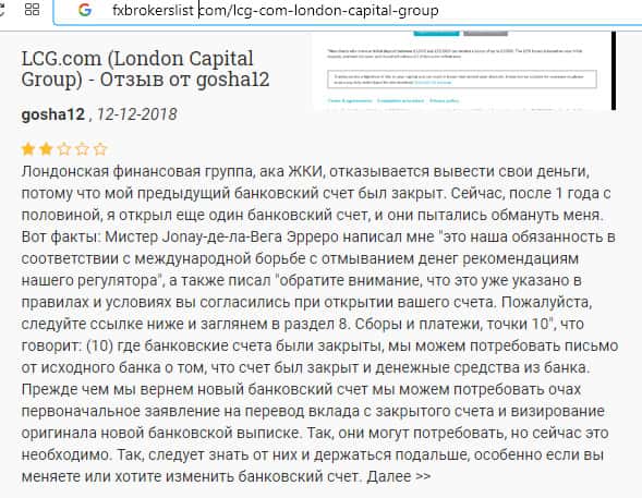 Отзыв клиента о худшем брокере - Лондон Капитал Групп