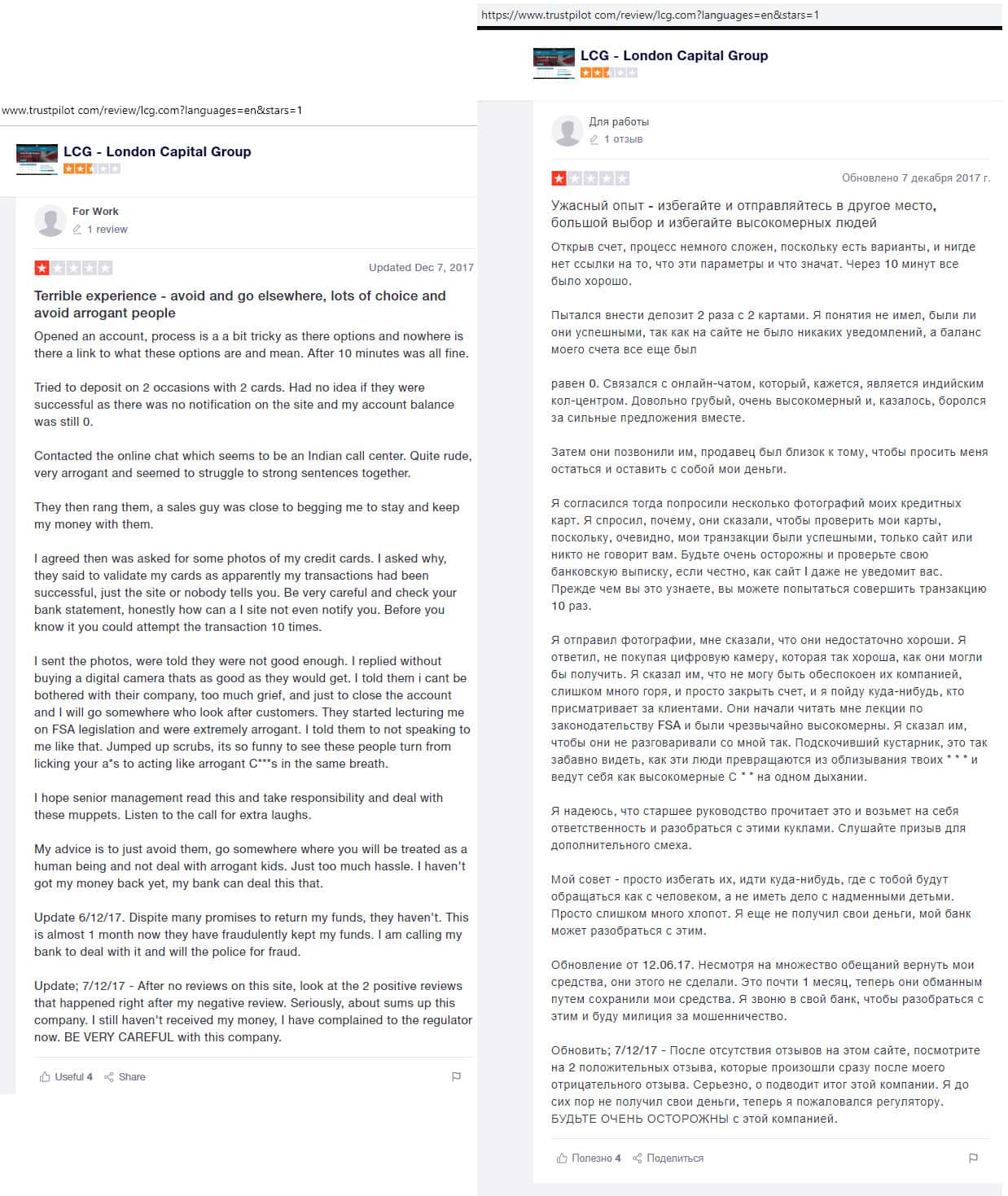 По мнению автора еще одного отзыва, шарлатанская контора Лондон Капитал Групп является мошенническим брокером, который то и делает, что отбирает у людей их сбережения. Если вы поспешили и уже вложили туда деньги, то знайте, что они с ними сделают тоже, что и с 300 долларами автора-жертвы.