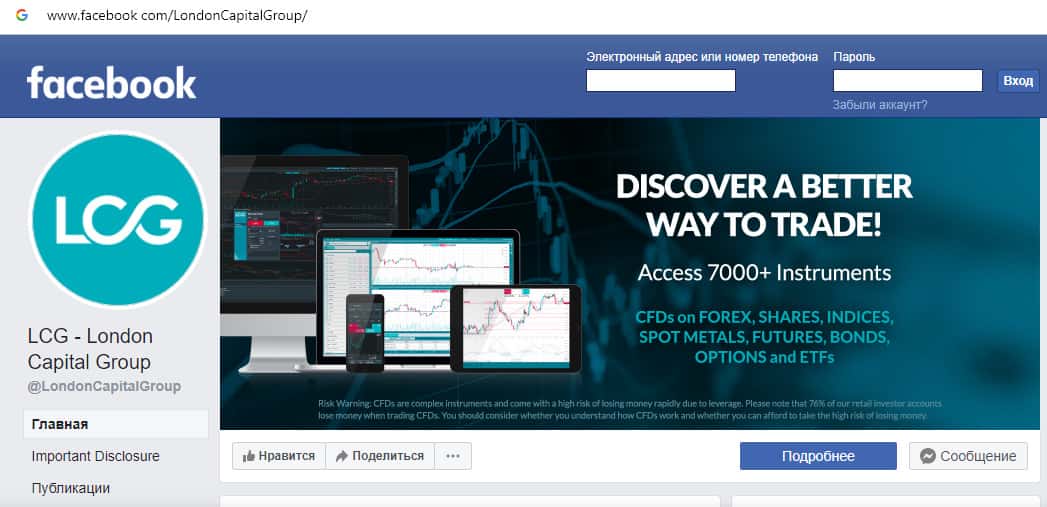 - группа в Фейсбук facebook com/LondonCapitalGroup