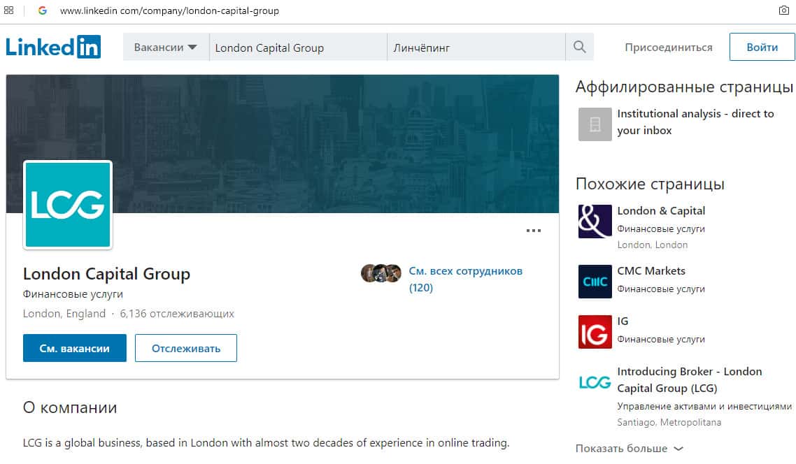 - аккаунт в ЛинкедИн linkedin com/company/london-capital-group