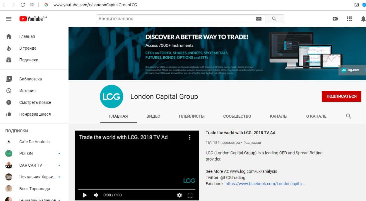 - канал в Ютуб youtube com/c/LondonCapitalGroupLCG