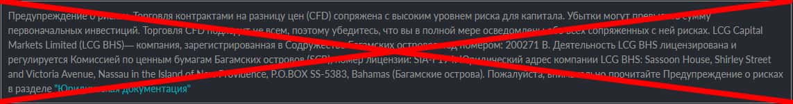 Касательно регуляции деятельности лохотрона Лондон Капитал Групп, здесь мы натыкаемся на информацию, что лицензия выдана Комиссией по ценным бумагам Багамских островов (SCB). Но здесь стоит отметить, что даже если это правда, то никакого разрешения работы на территории Российской Федерации оно не дает. Поэтому это фейк.