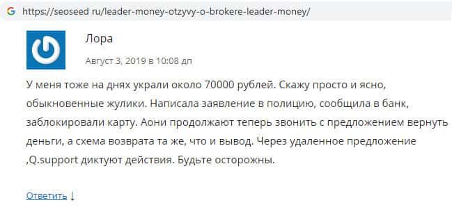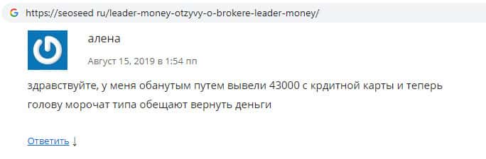 Алена на сайте seoseed ru пишет о мошенничестве скам-компании Лидер Мани