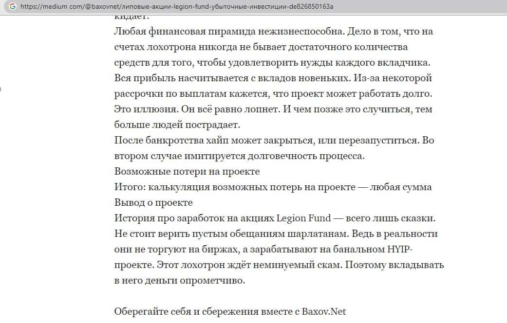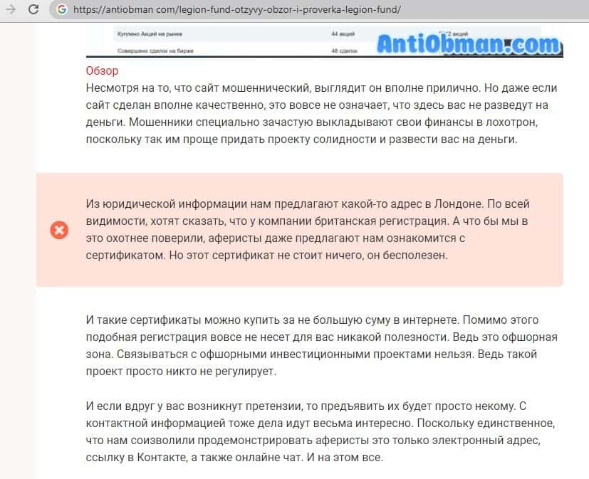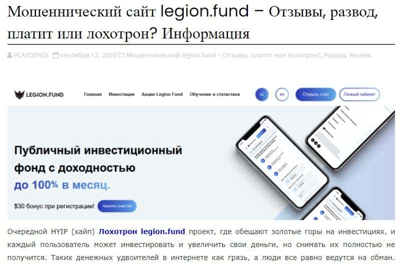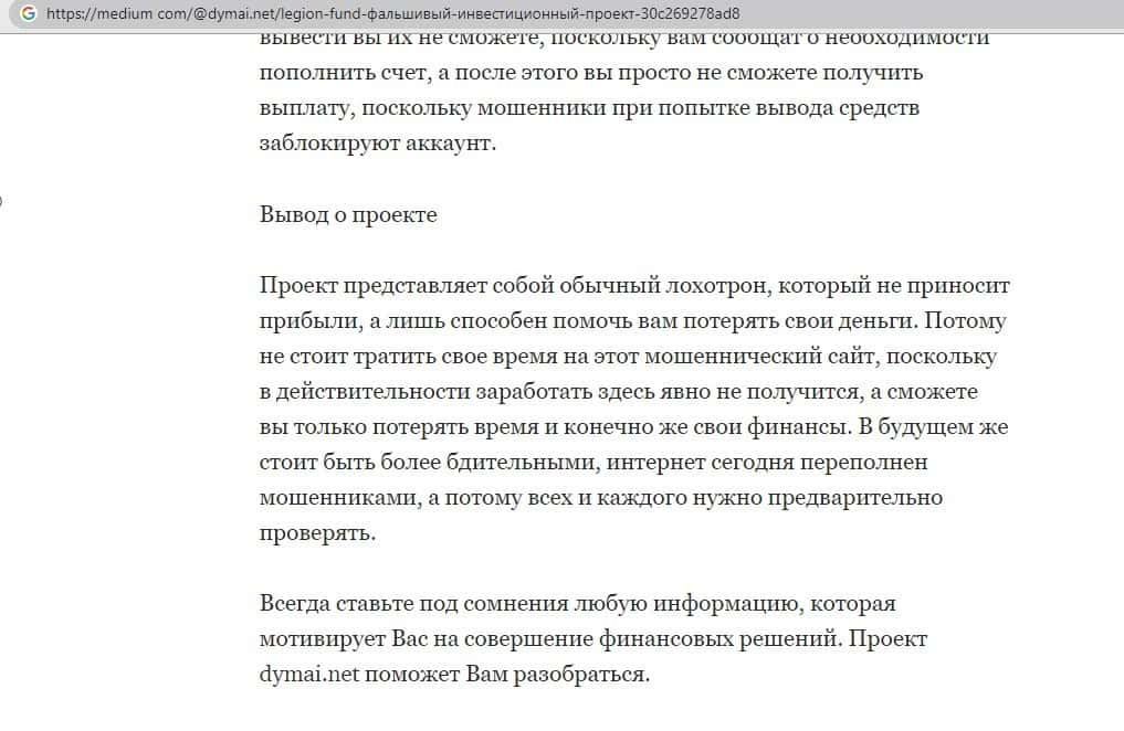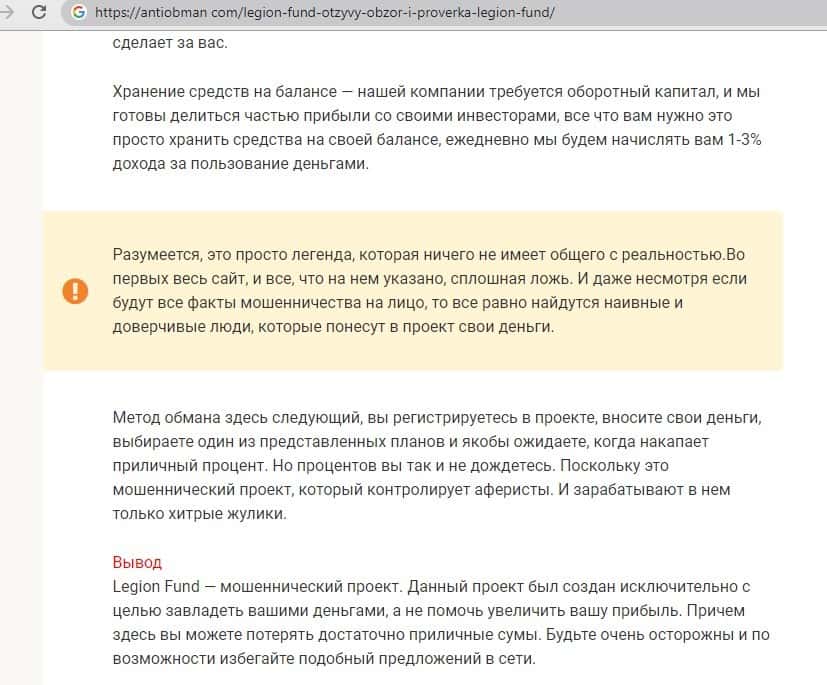 Обзоры сайта Legion Fund на других интернет-ресурсах