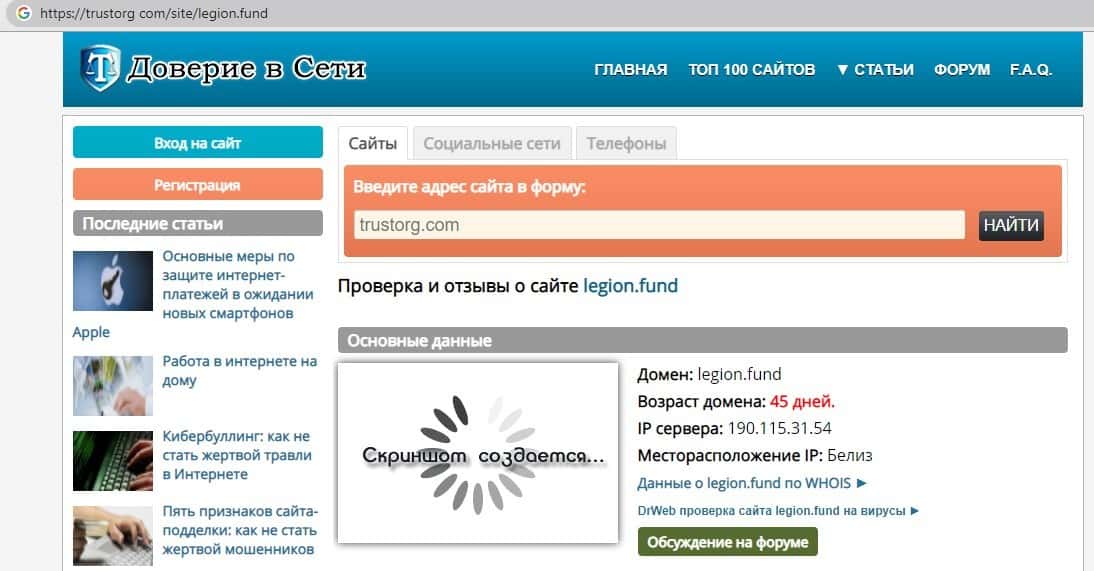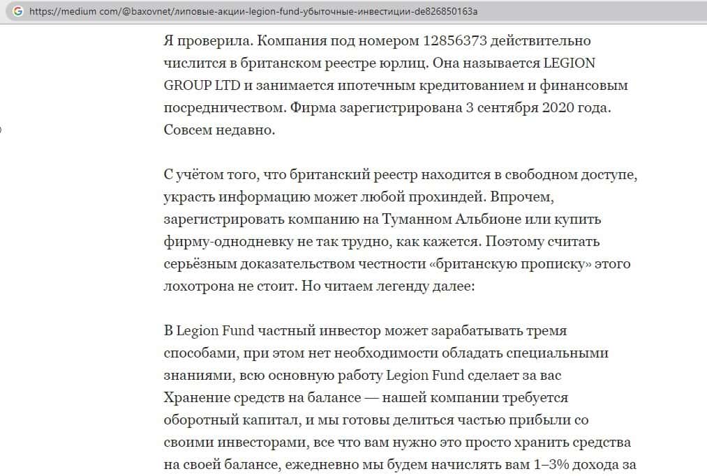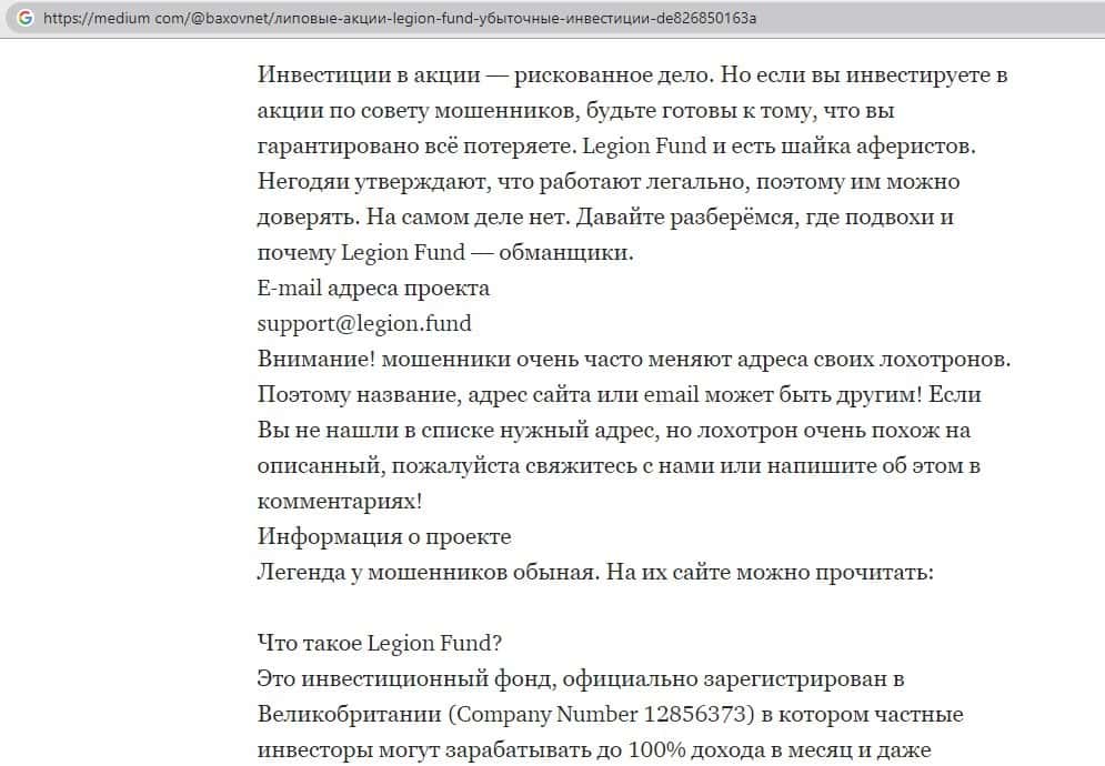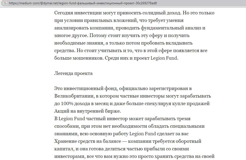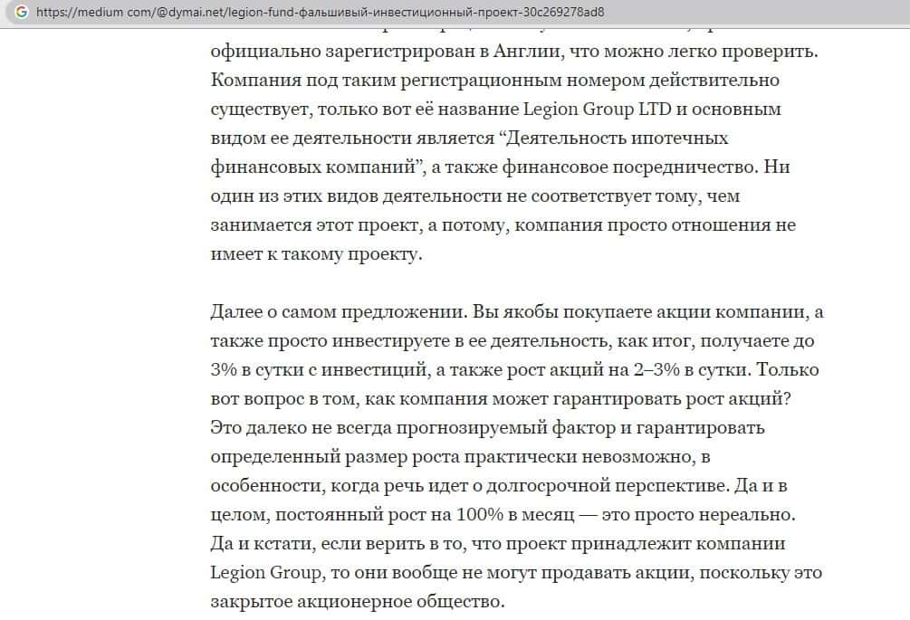 Обзоры сайта Legion Fund на других интернет-ресурсах