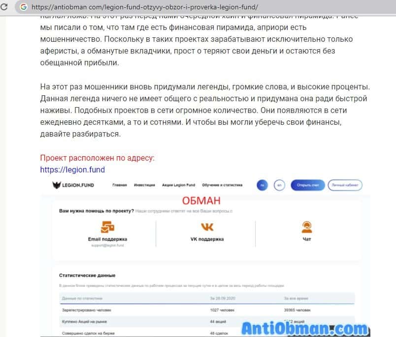 legion fund - Официальный портал аферистов Легион Фонд